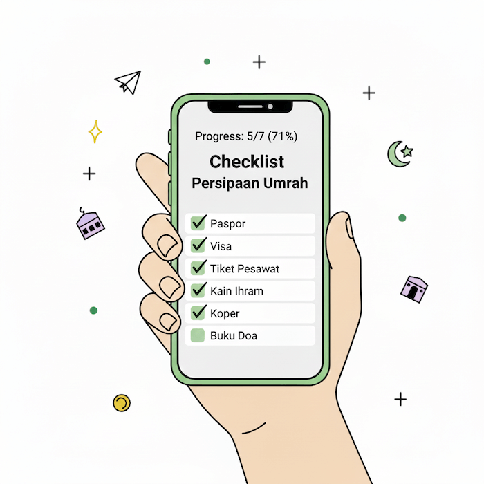 SafarDaily menyediakan lebih dari 100 checklist yang disusun secara terstruktur, mencakup packing list, akomodasi, kesehatan, dan kontak darurat agar persiapan ibadah terasa lebih tenang dan menyeluruh.